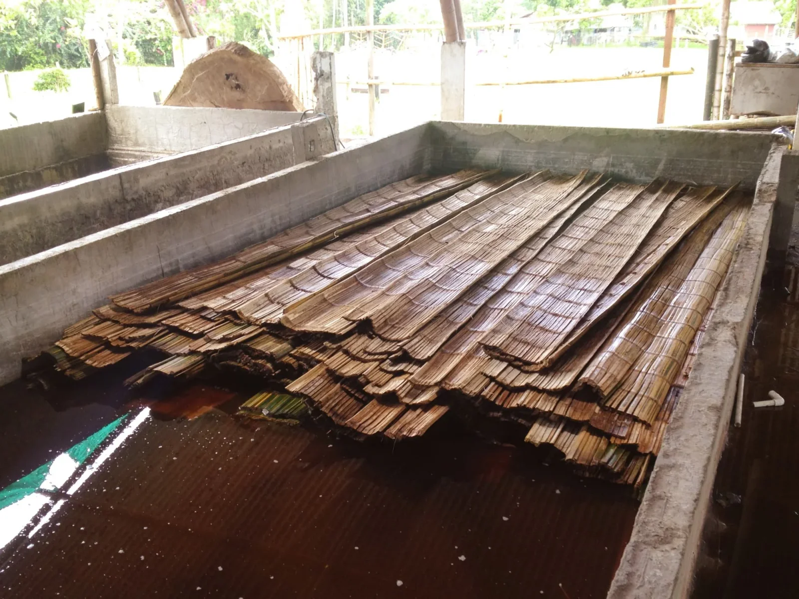 - When the bamboo mats are completely cleaned, the next step is to preserve them against future insect attacks and mold. Curing is done by submerging the bamboo in tanks with a mixture of non-toxic preservatives and water for several days.