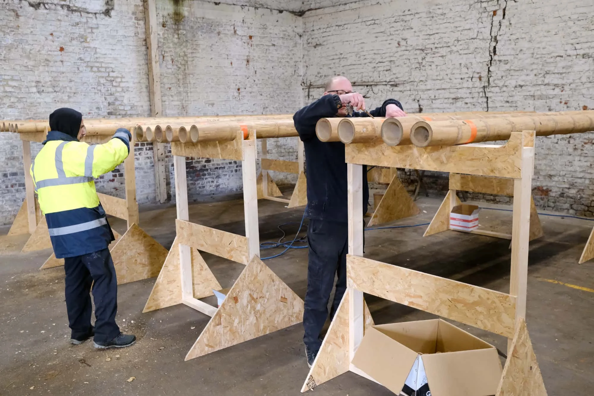 To meet strict European safety and fire standards, the bamboo underwent rigorous structural testing at de Noordboom in collaboration with Ghent University. This pioneering work took the expertise of Ph.D. architect Sven Mouton and the dedicated team at MOUTON for structural design. They navigated a five year journey of groundbreaking calculations, testing, and certification. Their efforts paved the way for bamboo construction in Europe despite the absence of standardized building codes for the material. This work has now set the foundation for future bamboo projects across the continent.