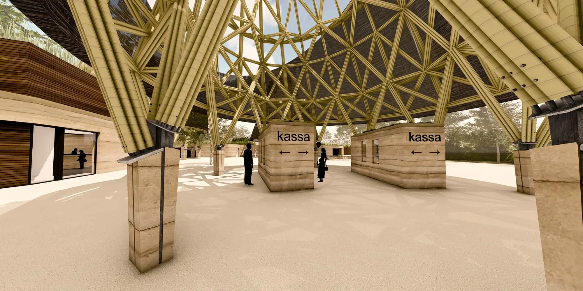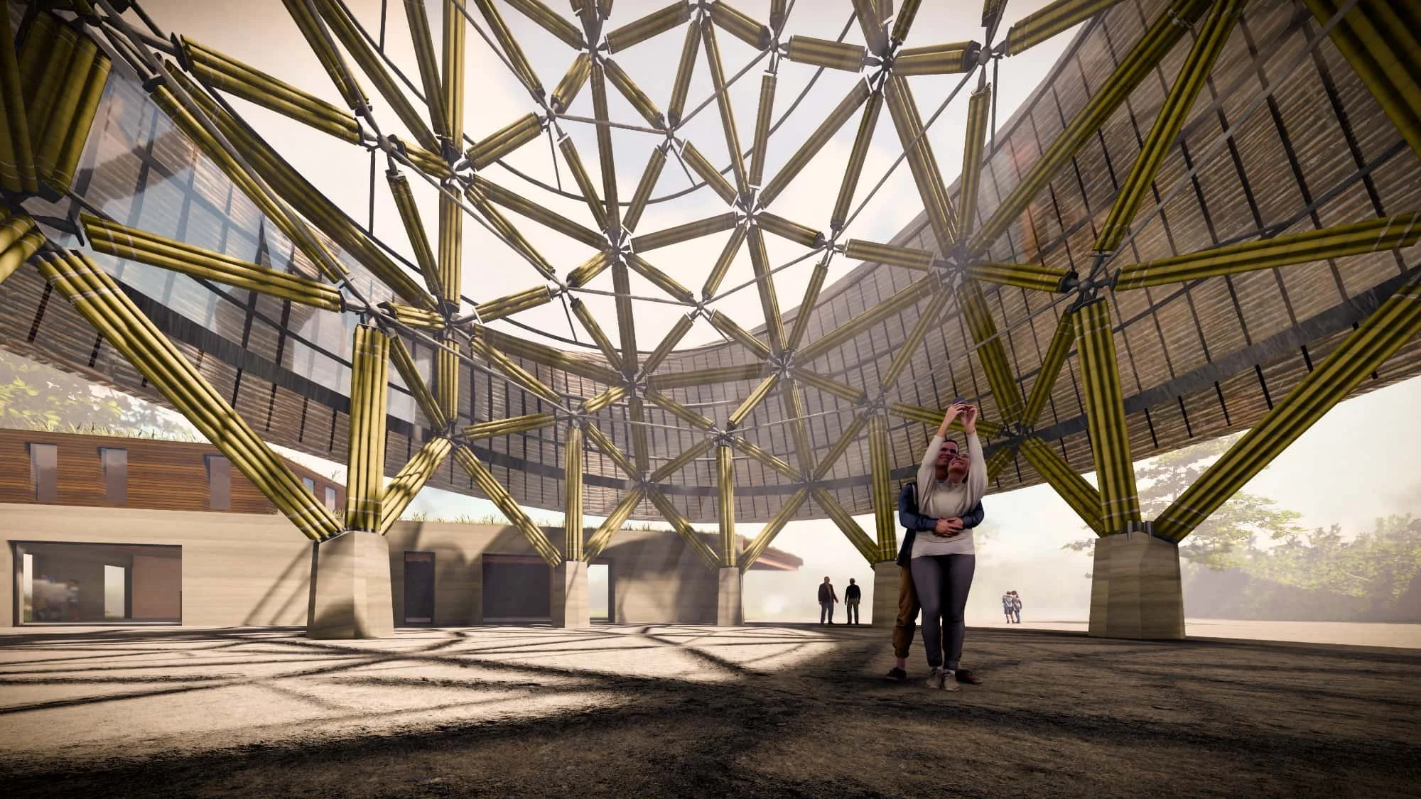 The physical realization of this complex design was managed by the contractor de Noordboom. Their team worked alongside CRU! Architects to transform the raw bamboo components into a cohesive structural landmark. The assembly utilized a custom steel joinery systems to secure the poles without compromising their natural integrity. Every element of the entrance was designed with sustainability at its core. CRU! Architects excluded non-circular building materials from the design. The buildings, constructed by de Noordboom, are wooden skeleton structures insulated with ecological materials like cellulose, wood wool, and flax. The facades are finished with pressed bamboo panels.